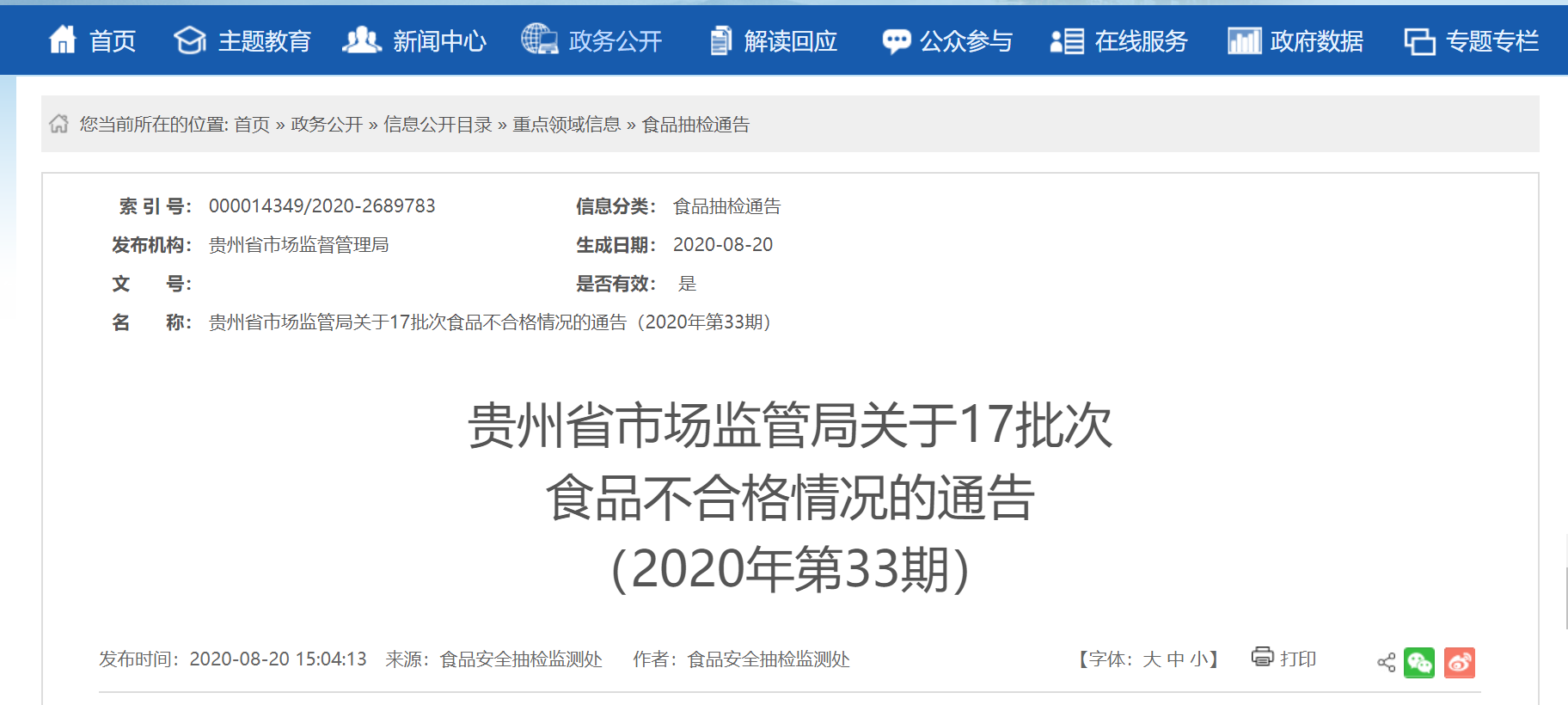 | 31 | / | 興義市下午屯劉氏莊園 | 興義市歡樂購商貿(mào)有限公司 | 貴州 | 土樵(熟米餌塊)(餌塊粑) | 稱重 | 2020/4/6 | / |