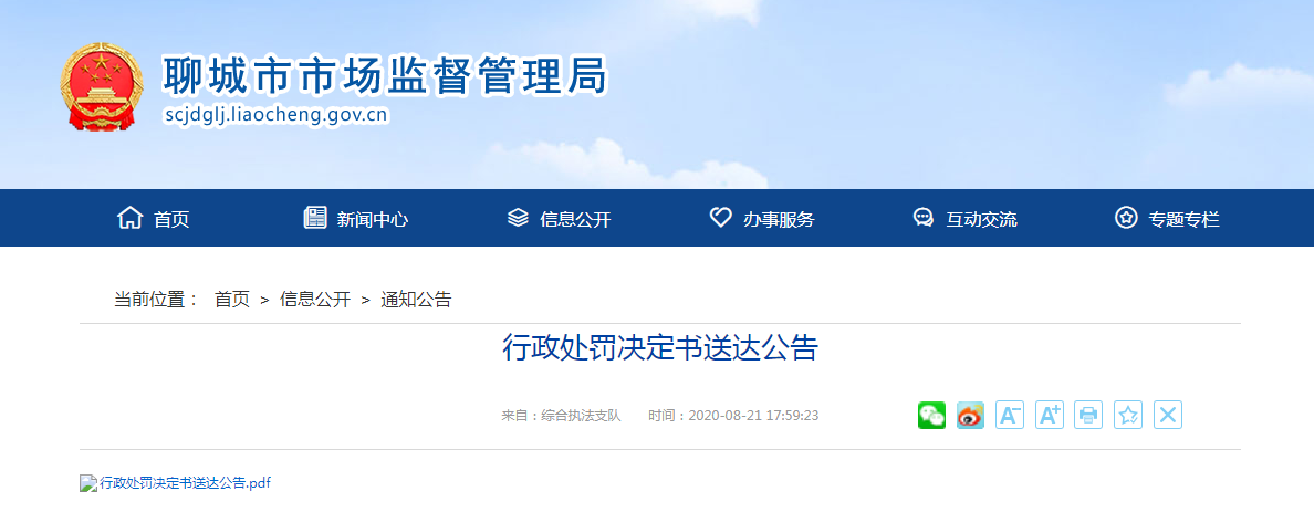 中國(guó)質(zhì)量新聞網(wǎng)訊 8月21日,山東聊城市市場(chǎng)監(jiān)督管理局官網(wǎng)發(fā)布行政處罰決定書送達(dá)公告,吊銷246家企業(yè)營(yíng)業(yè)執(zhí)照。