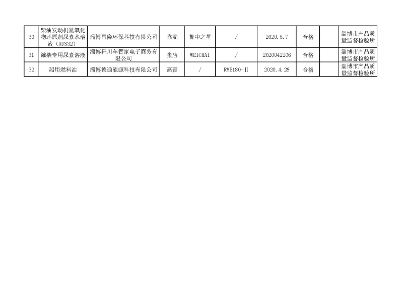 中國質(zhì)量新聞網(wǎng)訊 (記者 徐遠官) 據(jù)山東淄博市市場監(jiān)督管理局網(wǎng)站8月25日消息,2020年4月至7月,該局組織對成品油和車用尿素產(chǎn)品開展產(chǎn)品質(zhì)量監(jiān)督抽查。本次共抽查了11家企業(yè)、3家加油站生產(chǎn)、銷售的32批次產(chǎn)品,合格32批次。
