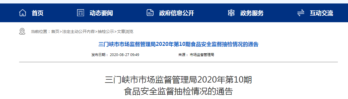 中國質量新聞網(wǎng)訊 (記者 徐遠官) 8月27日,河南三門峽市市場監(jiān)督管理局網(wǎng)站發(fā)布通告稱,近期,三門峽市市場監(jiān)督管理局組織抽檢了乳制品、糧食加工品、酒類、食用油、食用農產(chǎn)品等五大類食品共47批次樣品,抽樣檢驗項目合格樣品46批次,不合格樣品1批次。