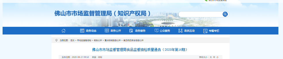 中國質(zhì)量新聞網(wǎng)訊 (記者 徐遠(yuǎn)官) 8月27日,廣東佛山市市場監(jiān)督管理局官網(wǎng)發(fā)布2020年第16期食品抽檢信息。佛山市市場監(jiān)督管理局在全市五區(qū)轄區(qū)內(nèi)生產(chǎn)、流通、餐飲環(huán)節(jié)組織開展了日常食品監(jiān)督抽檢工作、生食魚生專項抽檢和餐飲具專項抽檢。