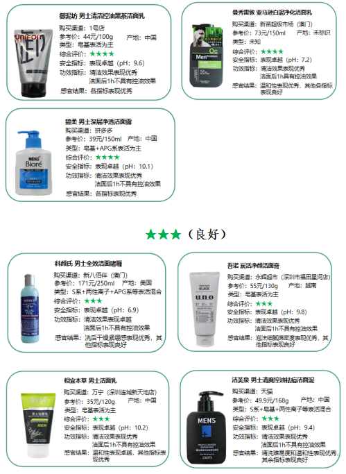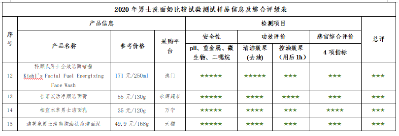 2020年男士洗面奶比較試驗總評表
