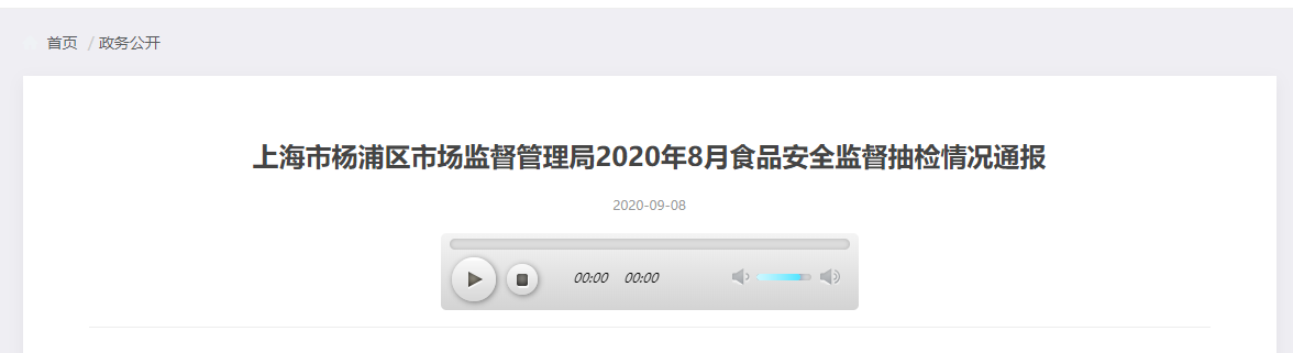 中國質量新聞網訊 (記者 徐遠官) 9月8日,上海市楊浦區(qū)市場監(jiān)督管理局通報2020年8月食品安全監(jiān)督抽檢情況。本次監(jiān)督抽檢信息涉及2大類食品,包括:食用農產品,餐飲食品等。抽檢樣品共計617批次,其中合格611批次、不合格6批次。