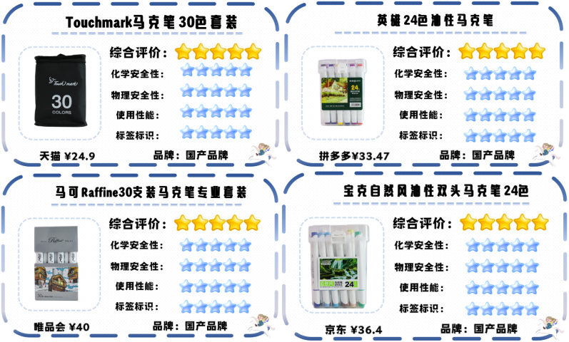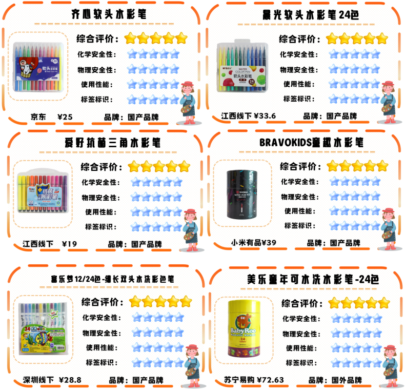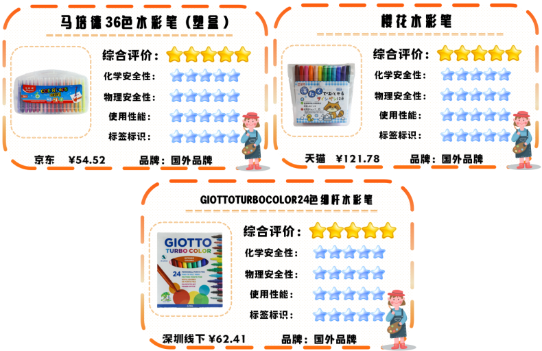 三、9款水彩筆、10款馬克筆品質領跑,國產(chǎn)品牌占15款