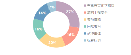 4. 有毒有害化學物質是消費者最關心的測試項目,占比27%。其次為書寫性能,占比20%。