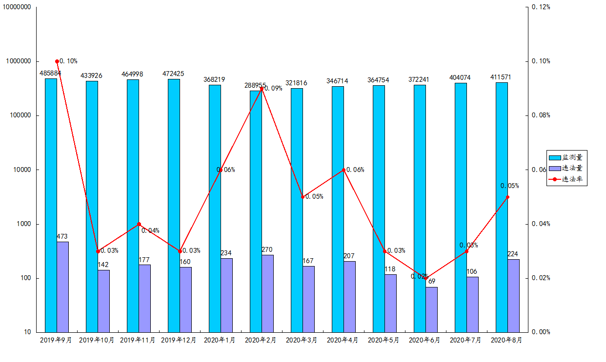 2020年8月1日至2020年8月31日,全市共監(jiān)測(cè)電視、廣播、平面等傳統(tǒng)媒體廣告411571條次,發(fā)現(xiàn)涉嫌違法廣告224條次,涉嫌違法率0.05%。
