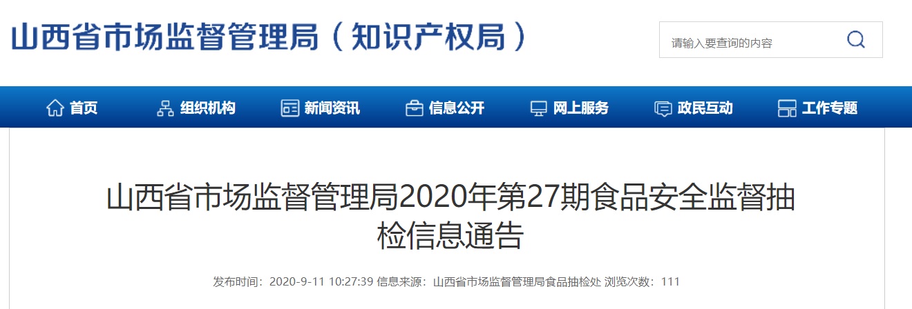 中國質(zhì)量新聞網(wǎng)訊 (記者 陳娟女) 9月11日,山西省市場監(jiān)督管理局網(wǎng)站發(fā)布2020年第27期食品安全監(jiān)督抽檢信息通告。據(jù)通告,該局近期組織食品安全監(jiān)督抽檢,抽取食用農(nóng)產(chǎn)品、糧食加工品、乳制品等21大類食品200批次樣品。根據(jù)食品安全國家標(biāo)準(zhǔn)檢驗和判定:抽樣檢驗合格樣品194批次、不合格樣品6批次。