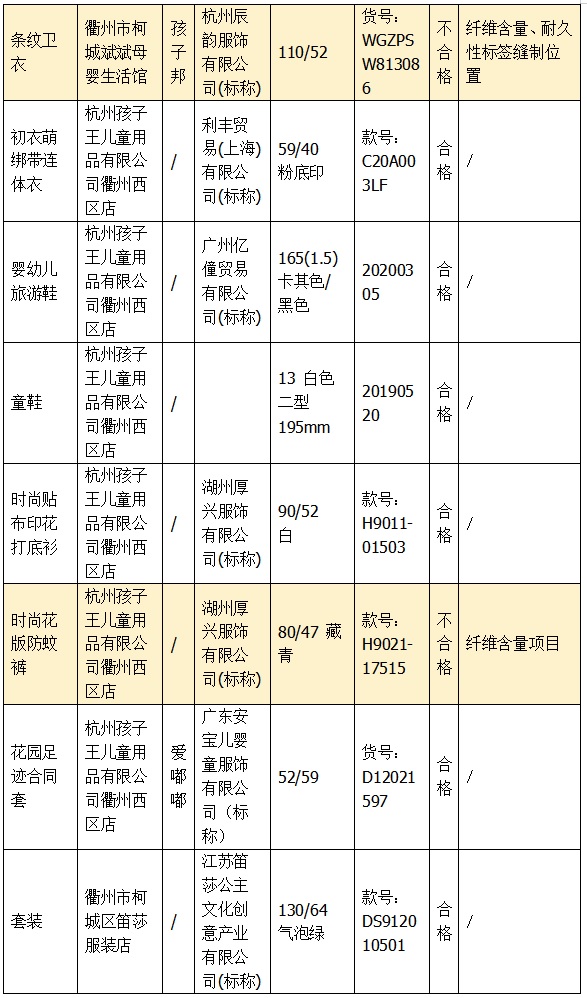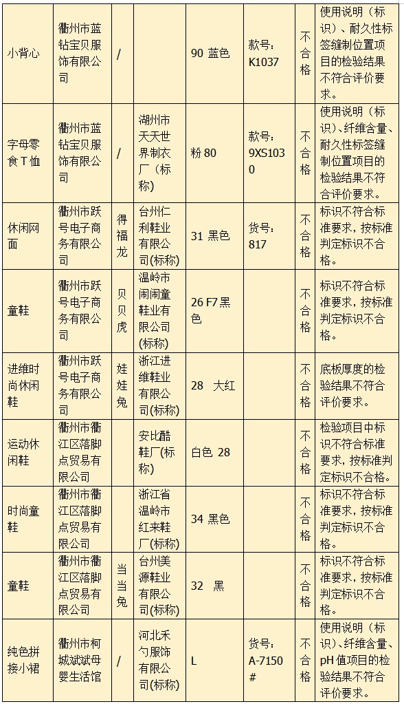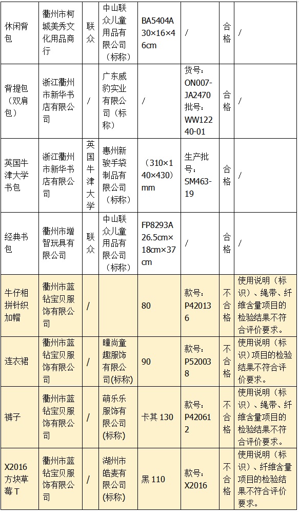 本次共抽檢兒童學(xué)生用品50批次。其中,9批次兒童服裝、6批次兒童鞋、1批次學(xué)生文具、1批次學(xué)生書袋,被判定質(zhì)量不合格。抽查發(fā)現(xiàn)的不合格產(chǎn)品已移交轄區(qū)監(jiān)管單位依法處理。