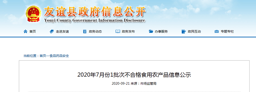 2020年7月份1批次不合格食用農(nóng)產(chǎn)品信息公示
