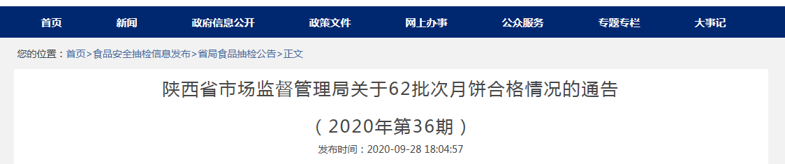 中國質(zhì)量新聞網(wǎng)訊 (記者 徐遠(yuǎn)官) 9月28日,陜西省市場監(jiān)督管理局官網(wǎng)發(fā)布通告稱,近期,該局組織對中秋節(jié)令食品月餅共62批次樣品進(jìn)行了食品安全監(jiān)督抽檢,所檢項目全部合格。