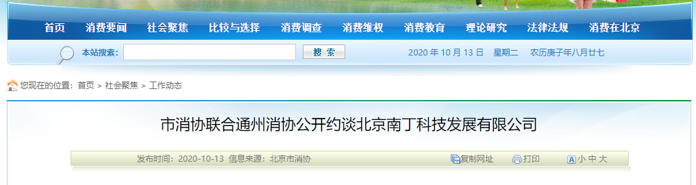 9月28日下午,北京市消協(xié)聯(lián)合部分區(qū)消協(xié)對今年以來全市各級消費者協(xié)會受理投訴量排名前十的企業(yè)進行集體約談。北京南丁科技發(fā)展有限公司(以下簡稱南丁公司)在收到約談通知的情況下拒絕參加集體約談。為此,10月12日下午,北京市消費者協(xié)會聯(lián)合通州區(qū)消費者協(xié)會對北京南丁科技發(fā)展有限公司進行公開約談。
