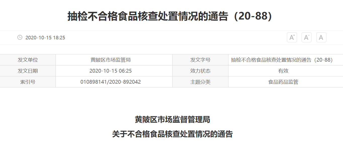 關(guān)于不合格食品核查處置情況的通告
