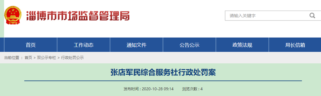 (淄)市監(jiān)支處字〔2020〕02011號 | 張店軍民綜合服務(wù)社(李思平)非法銷售軍服仿制品案 | 張店軍民綜合服務(wù)社(李思平)非法銷售軍服仿制品 | 違反了《軍服管理條例》第十一條第二款的規(guī)定,依據(jù)《軍服管理條例》第十二條第一款第(三)項和《中華人民共和國行政處罰法》第二十三條的規(guī)定。 | 張店軍民綜合服務(wù)社(李思平) | 92370303MA3DEF2C2A | 李思平 | 1、責(zé)令改正違法行為;2、沒收違法銷售的軍服仿制品;3、沒收違法所得柒佰壹拾陸(716.00)元整; 4、罰款貳萬伍仟(25000.00)元整。 | 2020/10/12 | 如不服本處罰決定,可于收到本處罰決定書之日起六十日內(nèi)向淄博市人民政府申請行政復(fù)議;也可以于六個月內(nèi)依法向淄博市張店區(qū)人民法院提起行政訴訟。 |