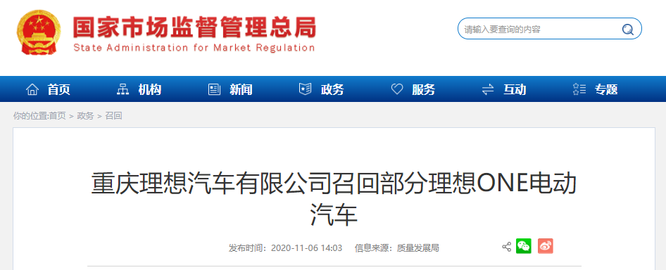中國質(zhì)量新聞網(wǎng)訊 據(jù)市場監(jiān)管總局網(wǎng)站11月6日消息,日前,重慶理想汽車有限公司根據(jù)《缺陷汽車產(chǎn)品召回管理?xiàng)l例》和《缺陷汽車產(chǎn)品召回管理?xiàng)l例實(shí)施辦法》的要求,向國家市場監(jiān)督管理總局備案了召回計(jì)劃。自即日起,召回生產(chǎn)日期在2019年11月14日至2020年6月1日的理想ONE電動(dòng)汽車,共計(jì)10469輛。