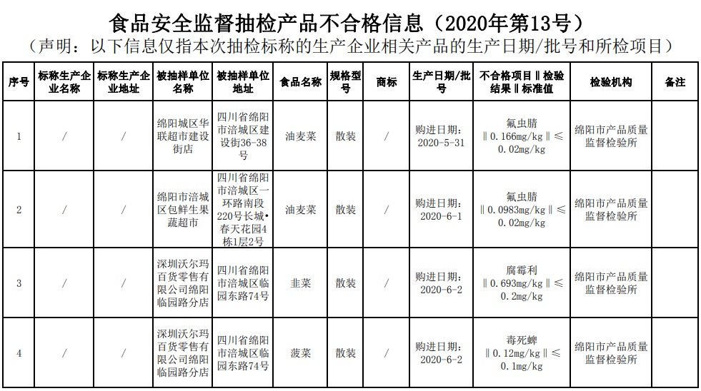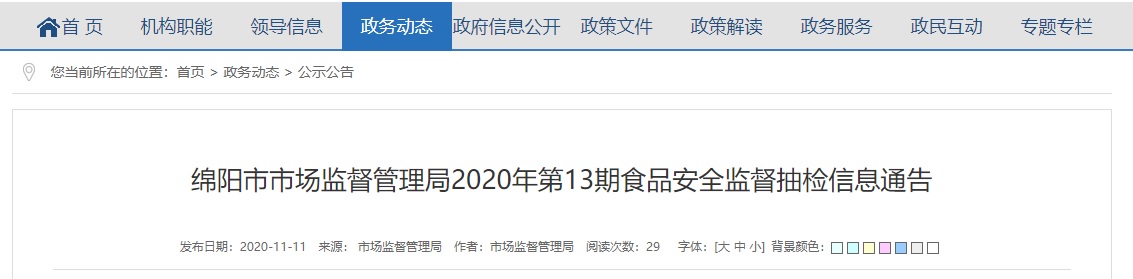 中國(guó)質(zhì)量新聞網(wǎng)訊 (記者陳娟女) 2020年11月11日,四川省綿陽(yáng)市市場(chǎng)監(jiān)督管理局網(wǎng)站發(fā)布2020年第13期食品安全監(jiān)督抽檢信息通告。本次監(jiān)督抽檢信息涉及糧食加工品、餐飲食品、乳制品、食用農(nóng)產(chǎn)品、淀粉及淀粉制品、糕點(diǎn)、食用油、油脂及其制品、蔬菜制品、調(diào)味品等9大類(lèi)共計(jì)715批次樣品,不合格17批次。