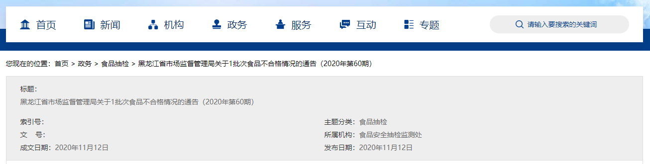 中國(guó)質(zhì)量新聞網(wǎng)訊 (記者 徐遠(yuǎn)官) 11月12日,黑龍江省市場(chǎng)監(jiān)督管理局官網(wǎng)發(fā)布2020年第60期食品抽檢信息。為切實(shí)加強(qiáng)網(wǎng)絡(luò)食品安全監(jiān)督管理,該局對(duì)蜂產(chǎn)品、糕點(diǎn)、糧食加工品、肉制品等12類400批次網(wǎng)絡(luò)銷售的食品開展專項(xiàng)監(jiān)督抽檢。其中,抽檢50批次糧食加工品,全部合格。
