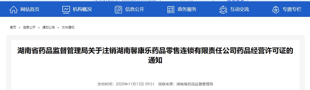 你公司關(guān)于申請(qǐng)注銷藥品經(jīng)營(yíng)許可證和藥品經(jīng)營(yíng)質(zhì)量管理規(guī)范認(rèn)證證書(shū)的報(bào)告收悉。根據(jù)你司申請(qǐng),依據(jù)《藥品經(jīng)營(yíng)許可證管理辦法》第二十六條和第三十條的規(guī)定,決定依法注銷湖南馨康樂(lè)藥品零售連鎖有限責(zé)任公司藥品經(jīng)營(yíng)許可證(編號(hào):湘BA7460079)。