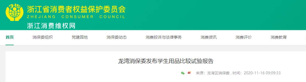 龍灣消保委發(fā)布學(xué)生用品比較試驗報告