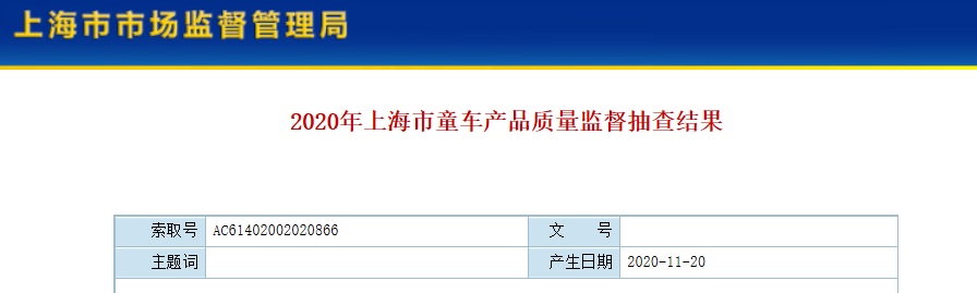2020年上海市童車產(chǎn)品質(zhì)量監(jiān)督抽查不合格產(chǎn)品