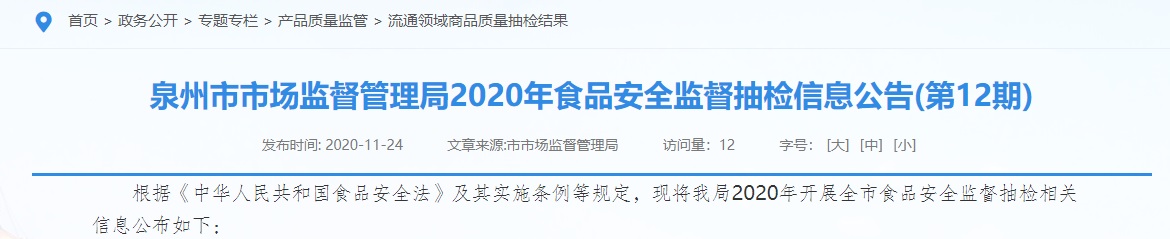 泉州市市場監(jiān)督管理局已要求相關業(yè)務科室和所在地縣(市、區(qū))市場監(jiān)管部門對不合格食品生產(chǎn)經(jīng)營者進行調(diào)查處置,依法查處違法違規(guī)行為,督促生產(chǎn)經(jīng)營者履行法定義務,防控食品安全風險。