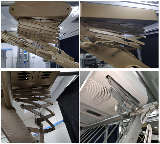 考慮到電動晾衣架在使用過程中容易出現(xiàn)兩邊重量不均衡的情況,試驗主要模擬電動晾衣架在承重不均衡情況下的承受能力。結(jié)果顯示,樣品均能正常升降,其中9件樣品在測試后部件及結(jié)構(gòu)牢固、完整,表現(xiàn)較好;16件樣品的剪刀架在測試過程中發(fā)生一定程度的形變。