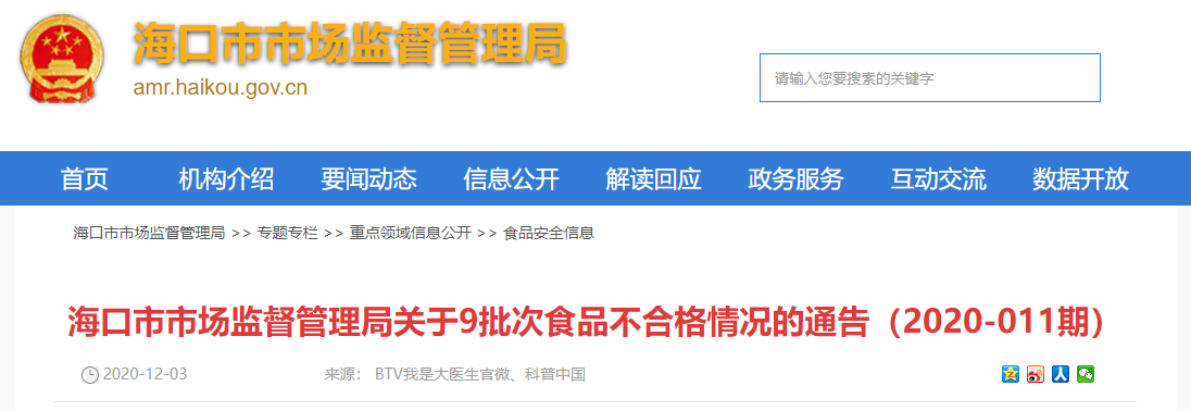 中國質(zhì)量新聞網(wǎng)訊 (記者 徐遠(yuǎn)官) 12月3日,海口市市場監(jiān)督管理局網(wǎng)站發(fā)布通告稱,近期,該局組織抽檢食用農(nóng)產(chǎn)品579批次,其中合格樣品570批次,不合格樣品9批次。根據(jù)食品安全國家標(biāo)準(zhǔn),個別項目不合格,其產(chǎn)品即判定為不合格產(chǎn)品。