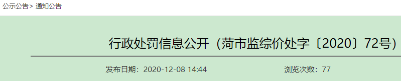 行政處罰信息公開(kāi)(菏市監(jiān)綜價(jià)處字〔2020〕72號(hào))