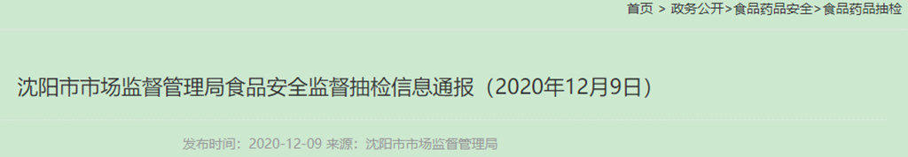 沈陽(yáng)市市場(chǎng)監(jiān)督管理局食品安全監(jiān)督抽檢信息通報(bào)(2020年12月9日)