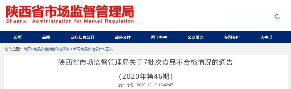中國質(zhì)量新聞網(wǎng)訊 (記者陳娟女) 2020年12月15日,陜西省市場監(jiān)督管理局網(wǎng)站發(fā)布的關于7批次食品不合格情況的通告(2020年第46期)顯示,近期,市場監(jiān)督管理部門組織對水產(chǎn)制品,食用農(nóng)產(chǎn)品,酒類,調(diào)味品,豆制品,糧食加工品,肉制品,乳制品,食用油、油脂及其制品,食鹽,餐飲食品,食品添加劑12大類食品173批次樣品進行了食品安全監(jiān)督抽檢,其中水產(chǎn)制品、食用農(nóng)產(chǎn)品、酒類、調(diào)味品4大類7批次樣品不合格,檢出污染物超標、獸藥超標、品質(zhì)未達標的問題。