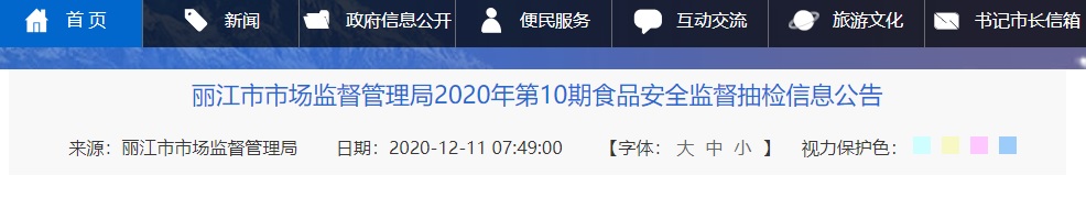 中國(guó)質(zhì)量新聞網(wǎng)訊 (記者陳娟女)據(jù)云南省麗江市人民政府網(wǎng)站消息,麗江市市場(chǎng)監(jiān)督管理局發(fā)布2020年第10期食品安全監(jiān)督抽檢信息公告。