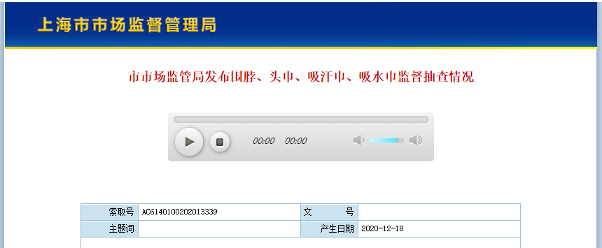| 上海市市場監(jiān)督管理局2020流通領(lǐng)域圍脖、頭巾、吸汗巾、吸水巾監(jiān)督抽查不合格情況表 | |||||||