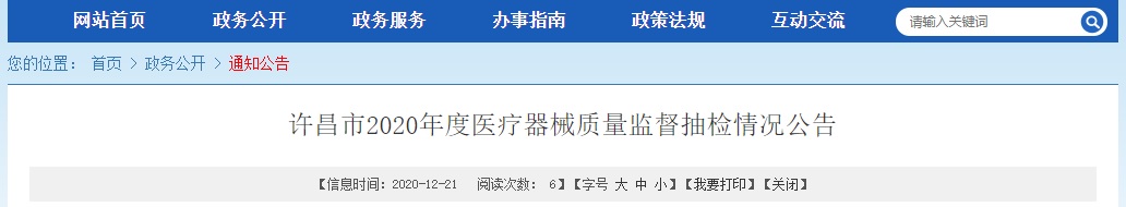 中國質量新聞網(wǎng)訊 (記者陳娟女) 2020年12月21日,河南省許昌市市場監(jiān)督管理局網(wǎng)站發(fā)布的許昌市2020年度醫(yī)療器械質量監(jiān)督抽檢情況公告顯示,為加強醫(yī)療器械質量監(jiān)督,保障醫(yī)療器械質量安全有效,許昌市市場監(jiān)督管理局對全市各地經(jīng)營、使用環(huán)節(jié)的醫(yī)療器械產(chǎn)品組織了監(jiān)督抽檢,樣品經(jīng)河南省醫(yī)療器械檢驗所檢驗,7批次產(chǎn)品已經(jīng)出具檢驗報告,被抽檢的7批次產(chǎn)品抽檢項目全部符合標準規(guī)定。