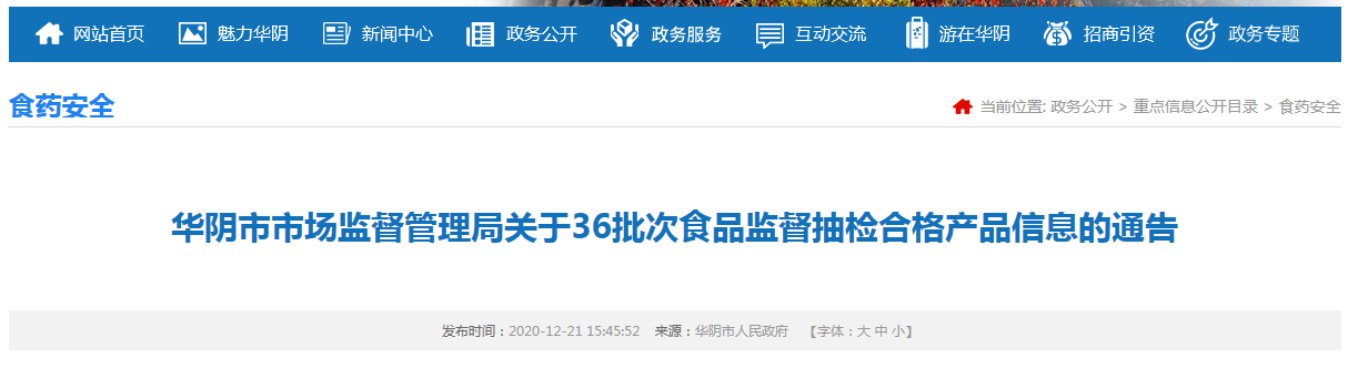 中國質(zhì)量新聞網(wǎng)訊 12月21日,陜西省華陰市市場監(jiān)督管理局發(fā)布通告稱,近期,該局抽檢餐飲食品36批次樣品,抽樣檢驗項目全部合格。