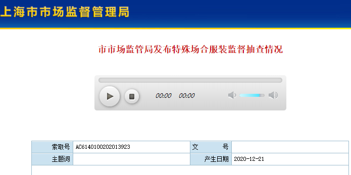 中國質(zhì)量新聞網(wǎng)訊 上海市市場監(jiān)管局網(wǎng)站近日發(fā)布特殊場合服裝監(jiān)督抽查情況。