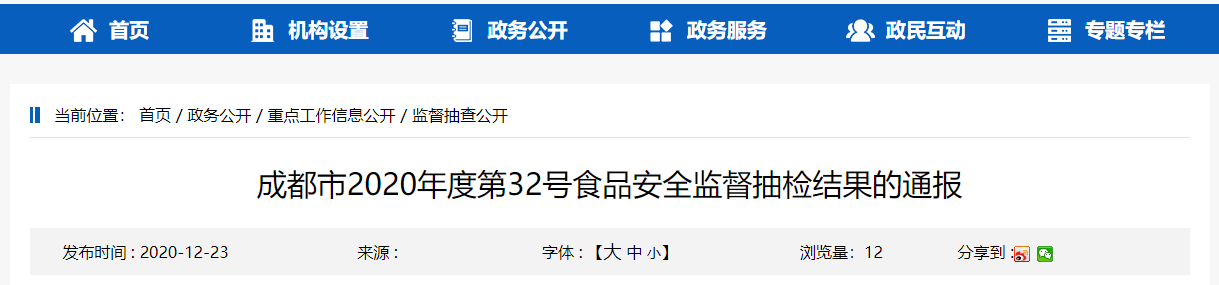 中國(guó)質(zhì)量新聞網(wǎng)訊 12月23日,成都市市場(chǎng)監(jiān)督管理局網(wǎng)站通報(bào)2020年度第32號(hào)食品安全監(jiān)督抽檢結(jié)果。本期公布豆制品、方便食品、糕點(diǎn)、酒類、乳制品、飲料、餐飲食品、食用農(nóng)產(chǎn)品等類別產(chǎn)品共1631批次食品安全監(jiān)督抽檢結(jié)果:1563批次合格,68批次不合格。