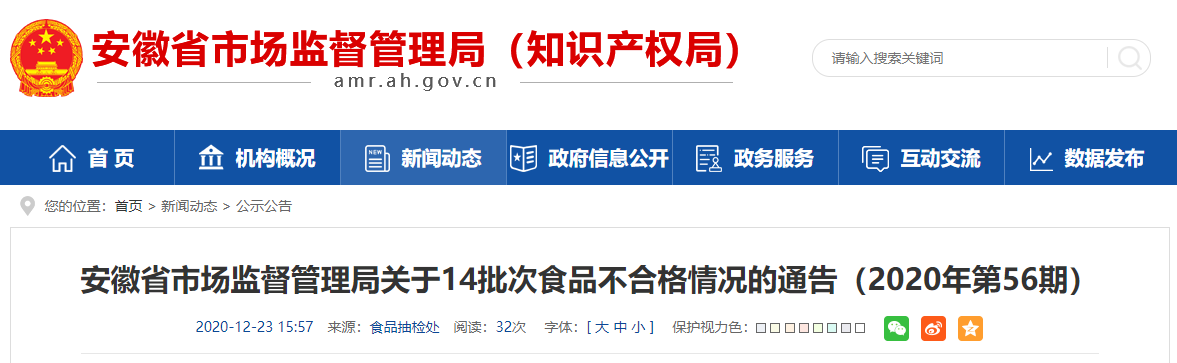 中國質量新聞網訊 (記者 徐遠官) 12月23日,安徽省市場監(jiān)督管理局網站發(fā)布關于14批次食品不合格情況的通告。通告稱,近期,該局組織抽檢食用油、油脂及其制品、蔬菜制品、食用農產品、飲料、乳制品、方便制品、肉制品、茶葉及相關制品8類食品1087批次樣品。根據食品安全國家標準檢驗和判定,其中抽樣檢驗項目合格樣品1073批次、不合格樣品14批次,不合格樣品涉及食品添加劑、微生物指標、農獸藥殘留等問題。