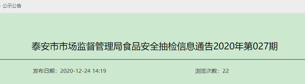 泰安市市場監(jiān)督管理局食品安全抽檢信息通告2020年第027期