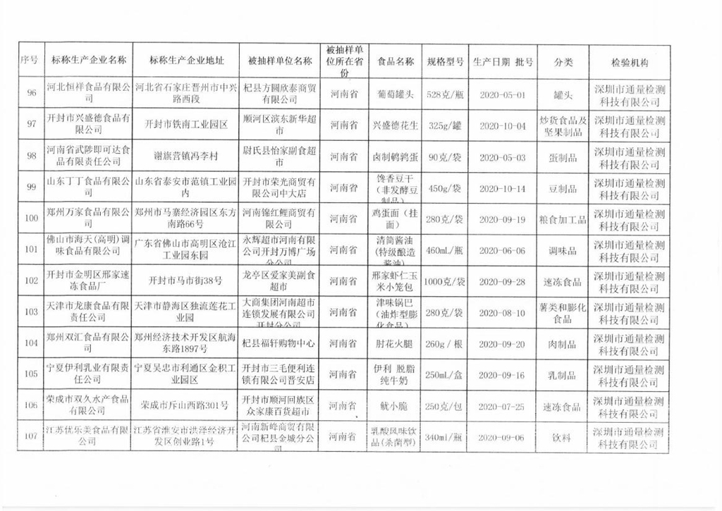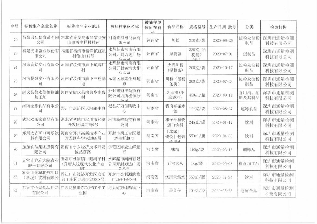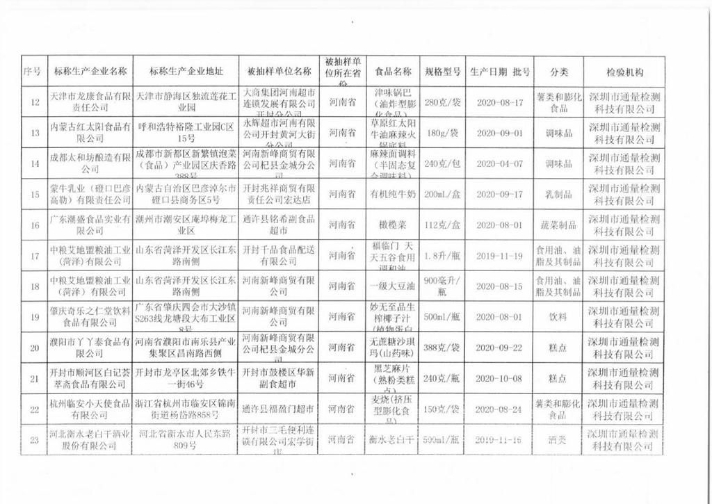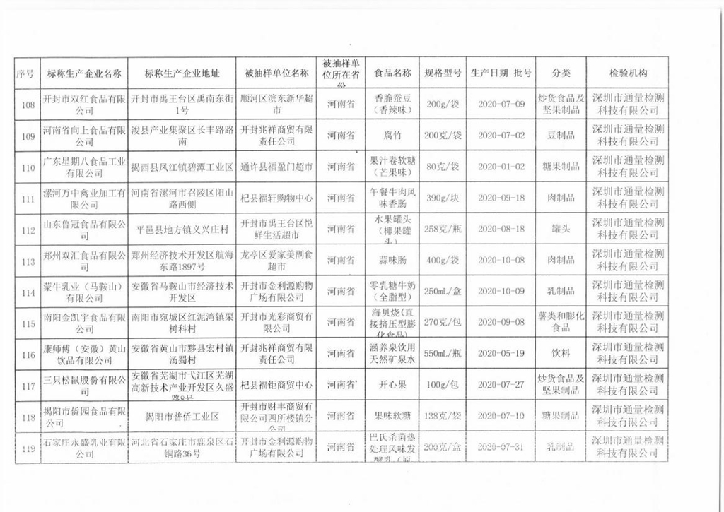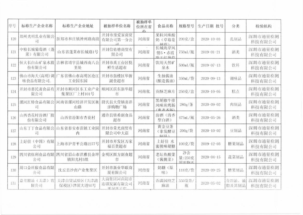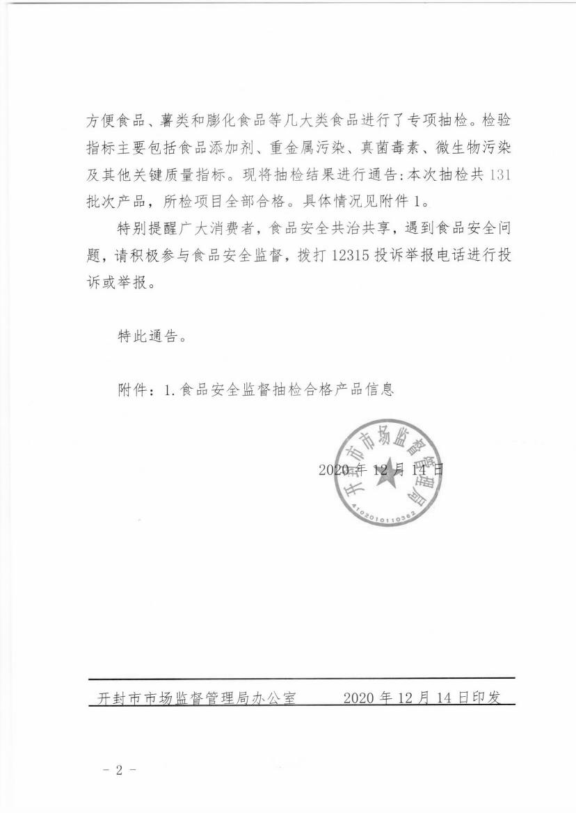 開(kāi)封市市場(chǎng)監(jiān)督管理局關(guān)于預(yù)包裝食品抽檢情況的通告(2020年第17號(hào))