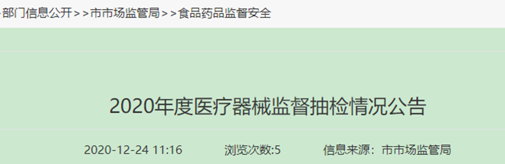 中國質(zhì)量新聞網(wǎng)訊 浙江省諸暨市人民政府網(wǎng)站12月24日發(fā)布2020年度醫(yī)療器械監(jiān)督抽檢情況公告。