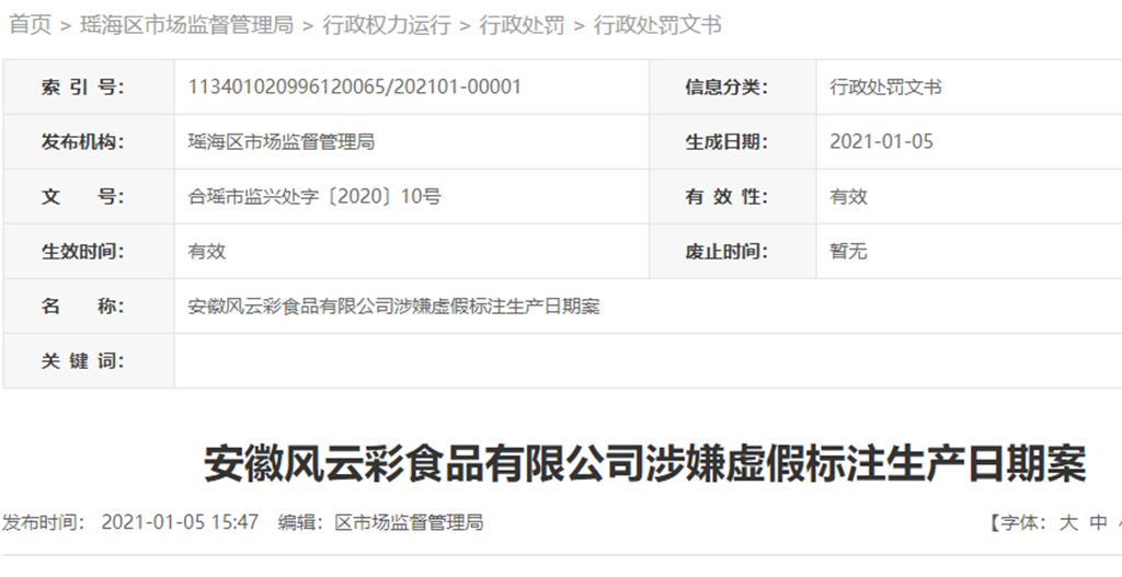 安徽風(fēng)云彩食品有限公司涉嫌虛假標(biāo)注生產(chǎn)日期案