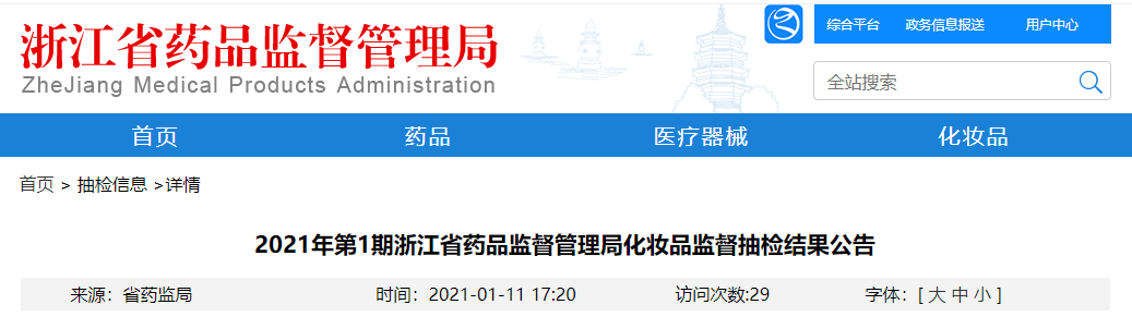 中國(guó)質(zhì)量新聞網(wǎng)訊 (記者 徐遠(yuǎn)官) 2021年1月11日,浙江省藥監(jiān)局網(wǎng)站發(fā)布公告稱,為加強(qiáng)化妝品質(zhì)量監(jiān)管,保障公眾健康安全,2020年該局組織開(kāi)展了全省化妝品監(jiān)督抽檢,涉及發(fā)用類(lèi)、護(hù)膚類(lèi)、指甲類(lèi)、香水類(lèi)、美容修飾類(lèi)、除臭類(lèi)等6大類(lèi)化妝品。經(jīng)檢驗(yàn),發(fā)現(xiàn)不合格9批次。
