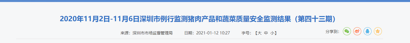 中國質量新聞網訊 2021年1月12日,深圳市市場監(jiān)督管理局網站發(fā)布深圳市例行監(jiān)測豬肉產品和蔬菜質量安全監(jiān)測結果(第四十三期)。