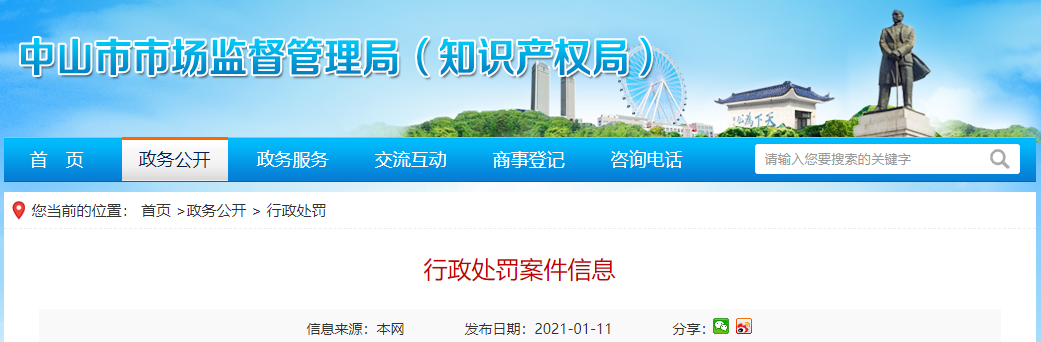 | 1 | 中市監(jiān)執(zhí)四處字【2020】1-021號 | 中山祥源飲料有限公司生產(chǎn)經(jīng)營不符合食品安全標準的食品案 | 中山祥源飲料有限公司 | 914420000923641857 | 中山市坦洲鎮(zhèn)新前進村大廟街11號 | 李嘉威 | 當事人存在生產(chǎn)不符合食品安全標準食品的行為 | 違反《食品安全法》第三十四條第二項的規(guī)定,依據(jù)《食品安全法》第一百二十五條第一款第一項,作出以下行政處罰:1、沒收違法所得549元;2、處罰款50000元。以上合計50549元。 | 截止2021年1月3日前未主動履行 | 中山市市場監(jiān)督管理局2020年12月18日 |