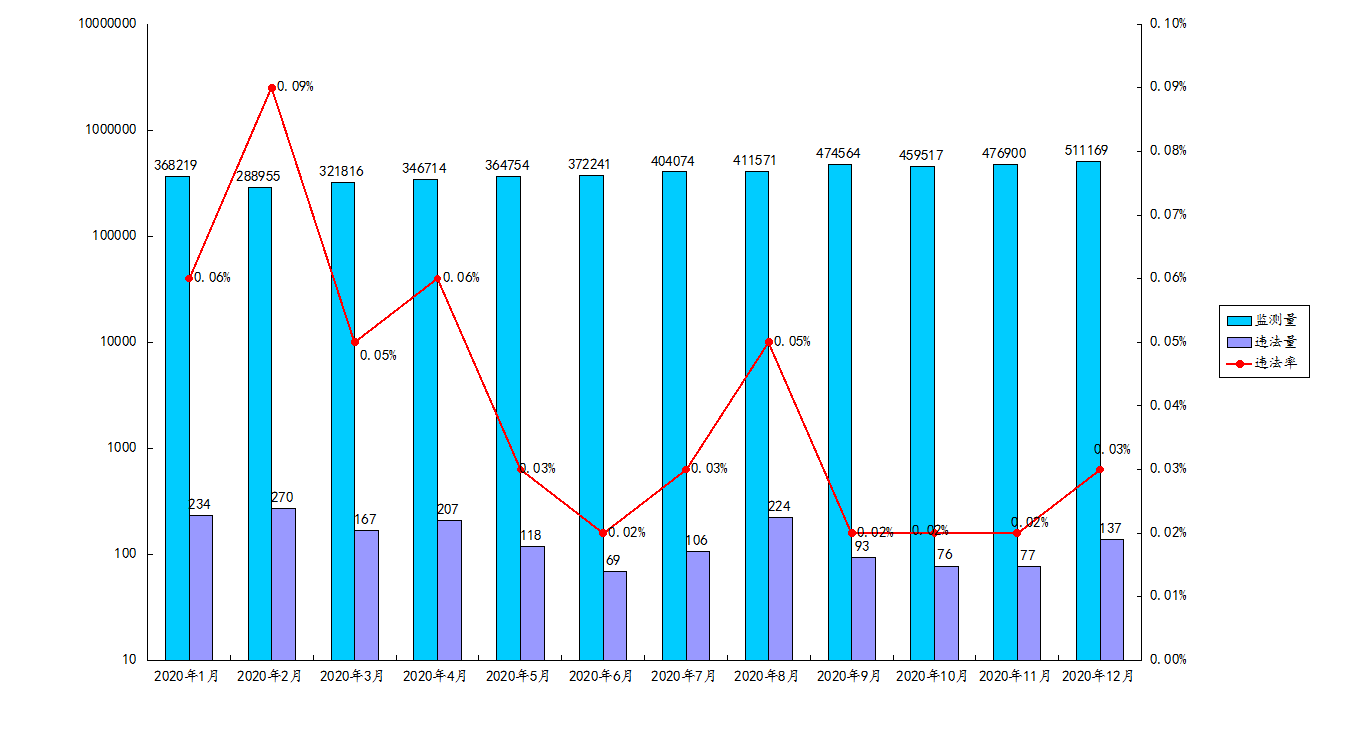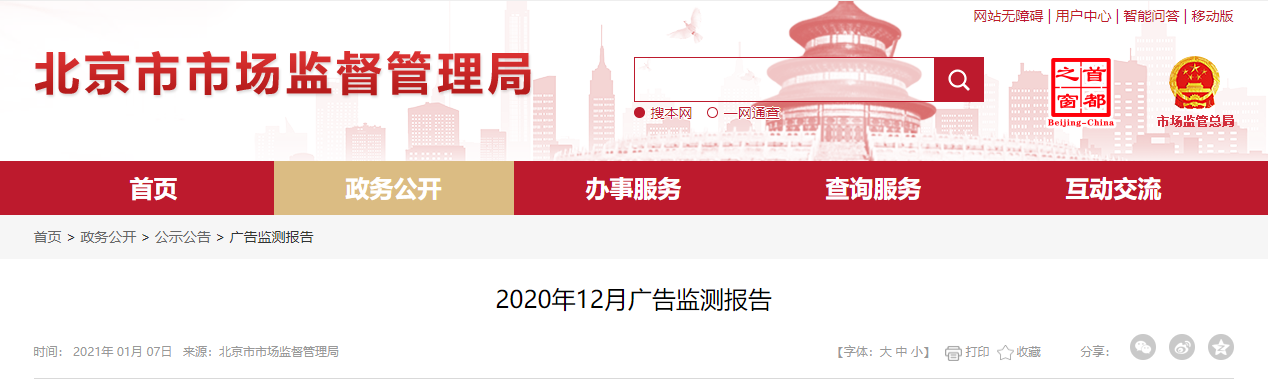 2020年12月1日至2020年12月31日,全市共監(jiān)測電視、廣播、平面等傳統(tǒng)媒體廣告511169條次,發(fā)現(xiàn)涉嫌違法廣告137條次,涉嫌違法率0.03%。