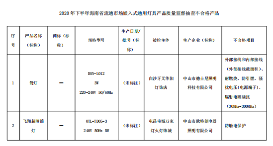 2020年下半年海南省流通市場嵌入式通用燈具產(chǎn)品質(zhì)量 監(jiān)督抽查結(jié)果.pdf