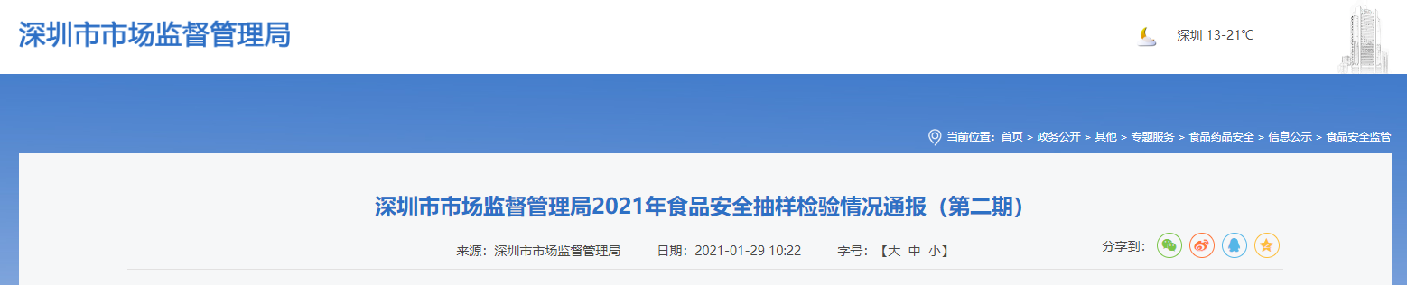 中國質(zhì)量新聞網(wǎng)訊 (記者 徐遠(yuǎn)官) 2021年1月29日,深圳市市場監(jiān)督管理局網(wǎng)站通報(bào)2021年第二期食品安全抽樣檢驗(yàn)情況。本次通報(bào)的食品共972批次,涉及經(jīng)營主體489家,共檢測食品指標(biāo)3662項(xiàng)次,發(fā)現(xiàn)不合格樣品13批次。涉及不合格食品類別有淀粉及淀粉制品1批次,食用農(nóng)產(chǎn)品3批次,蔬菜制品9批次;涉及不合格項(xiàng)目類別為農(nóng)藥殘留、食品添加劑、金屬等元素污染物、品質(zhì)指標(biāo)。