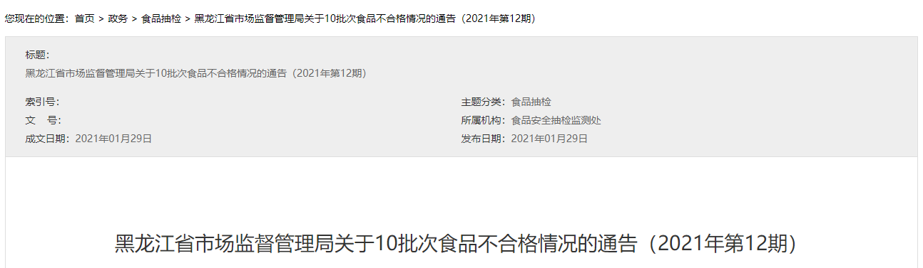 中國質(zhì)量新聞網(wǎng)訊 (記者 徐遠(yuǎn)官) 2021年1月29日,黑龍江省市場監(jiān)督管理局網(wǎng)站發(fā)布2021年第12期食品抽檢信息稱,近期,該局組織完成了食品安全監(jiān)督抽檢任務(wù)153批次,涉及食用農(nóng)產(chǎn)品、糧食加工品、乳制品等4類食品。其中檢出3批次食用農(nóng)產(chǎn)品不合格。