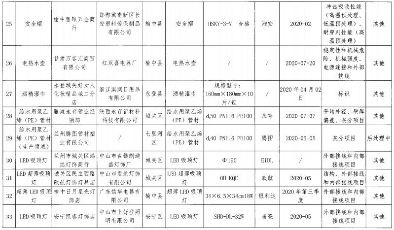 蘭州市市場監(jiān)督管理局2020年工業(yè)品產品質量監(jiān)督抽查結果通報.pdf