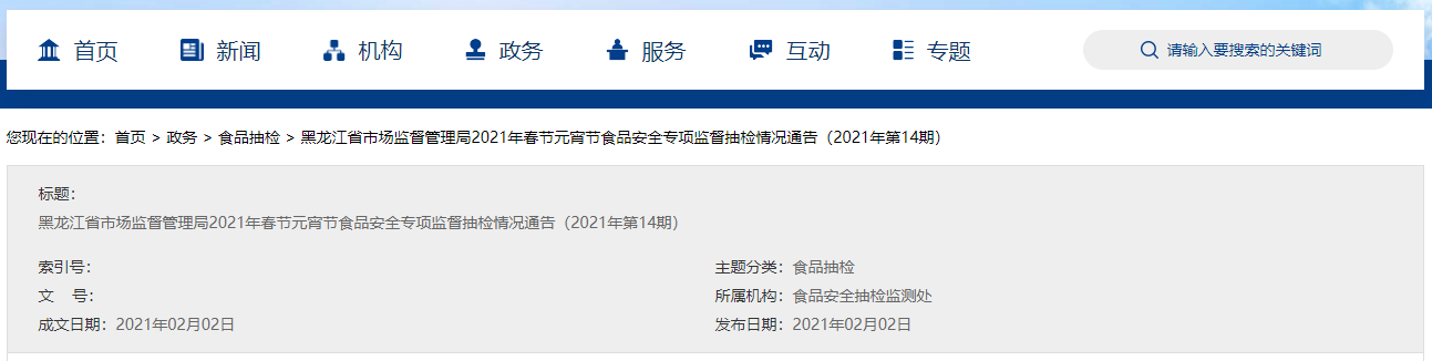 為保障新春佳節(jié)期間的食品安全,黑龍江省市場監(jiān)督管理局對糧食加工品、調(diào)味品、肉制品、乳制品等12個大類1500批次食品開展了專項抽檢。根據(jù)食品安全國家標(biāo)準(zhǔn)檢驗和判定,合格樣品1495批次,其中:抽檢的糧食加工品、調(diào)味品、肉制品、乳制品、飲料、酒類、冷凍飲品、速凍食品、糖果制品等9大類食品樣品全部合格;不合格樣品5批次,分別是食用油、炒貨及堅果制品、食用農(nóng)產(chǎn)品大類中的個別樣品(該5批次樣品尚在異議期限內(nèi),如不合格食品生產(chǎn)經(jīng)營者提出異議申請,對異議情況另行公布)。不合格項目主要是農(nóng)藥殘留超標(biāo)、重金屬污染、微生物污染、加工助劑殘留?,F(xiàn)將具體情況通告如下: