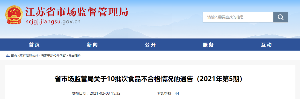 中國質(zhì)量新聞網(wǎng)訊 (記者 徐遠官) 2021年2月3日,江蘇省市場監(jiān)督管理局網(wǎng)站發(fā)布關于10批次食品不合格情況的通告(2021年第5期)。通告稱,近期,該局完成省級食品安全監(jiān)督抽檢任務692批次,涉及食用油、油脂及其制品、調(diào)味品、酒類、豆制品、食品添加劑和食用農(nóng)產(chǎn)品。根據(jù)食品安全國家標準檢驗和判定,其中抽樣檢驗項目合格樣品682批次、不合格樣品10批次,具體情況如下: